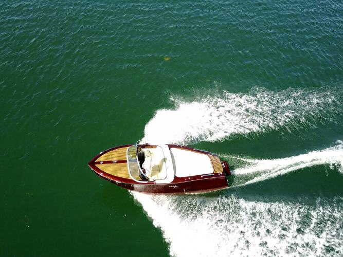 Die Inizio, ist ein GFK-Boot, das durch seine klassische Form und die unnachahmliche Designlackierung besticht. In diesem Boot verschmelzen die Vorteile der Kunststofffertigung mit der Schönheit und dem Stil der klassischen 50er Jahre Boote.